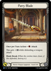 If you've drawn a card this turn, your sword attacks cost {r} less to activate. Once per Turn Action -- Banish 2 red and 2 yellow cards from your graveyard: The next time a weapon you control hits a hero this turn, create a Gold token. Go again
