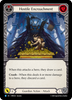 When this defends a Guardian attack, clash with the attacking hero. If there is a winner, the other hero puts a -1{d} counter on an off-hand they have equipped. If they don't, they lose 1{g}. (Clashing heroes reveal the top card of their deck. The hero that reveals the card with greatest {p} wins.)