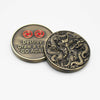 1 x Silver Token, fan designed to be compatible with Flesh And Blood TCG. Two-sided: These solid metal tokens are reversible, with raised metal graphics on side 1, and a raised metal "2" in enamel to symbolize your character has two pieces of silver.